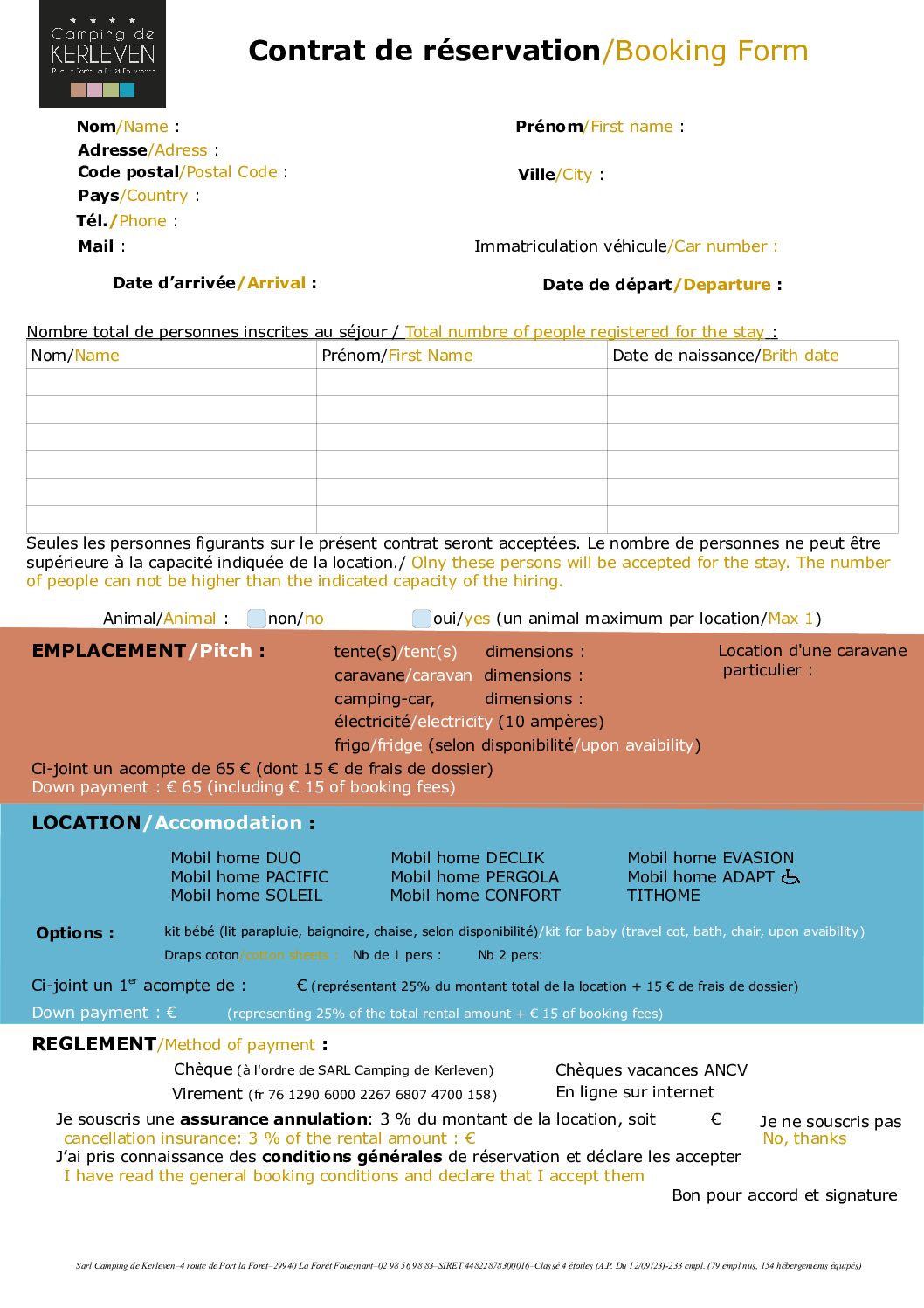 Vous pouvez télécharger le contrat de location de votre séjour, à remplir et à nous renvoyer.